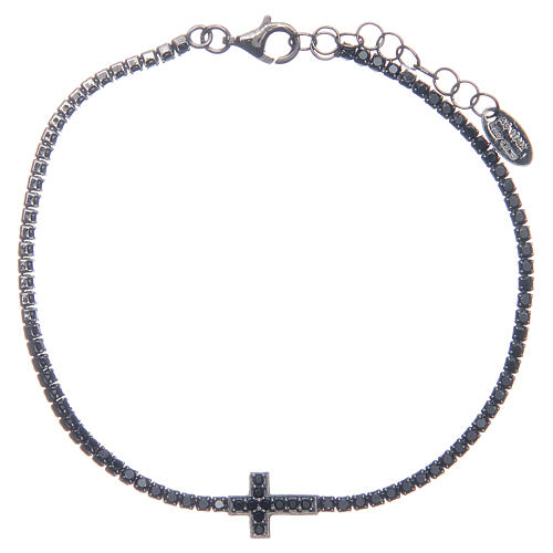 Pulseira riviera Amen cruz e zircões preto. Pulseira tipo riveira da marca Amen, realizada com zircões pretos e no centro uma cruz. A estrutura da pulseira é em prata 925.