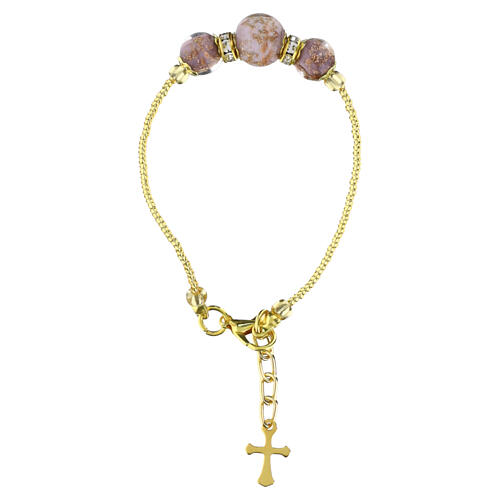 Pulseira 10 mm vidro de Murano lilás com cruz dourada