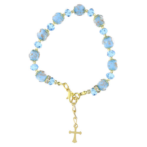 Pulseira com cristais da Boêmia 5 mm e pérolas de Murano 10 mm azul celeste, acabamento dourado