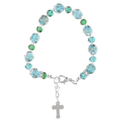 Pulseira verde em vidro de Murano 10 mm e cristais da Boêmia 5 mm, acabamento prateado