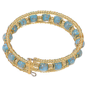 Pulseira elástica com contas em pedra turquesa e Nossa Senhora Loreto