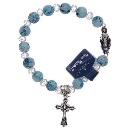 Pulseira elástica com contas em vidro azul Medalha Milagrosa