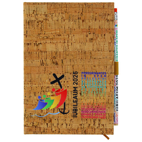 Bloco de notas Jubileu 2025 tampa de cortiça multilíngue lápis 20x15 cm