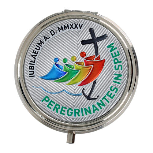 A tampa é decorada com o logótipo oficial do Jubileu 2025 a cores e o lema Peregrinantes in Spem.