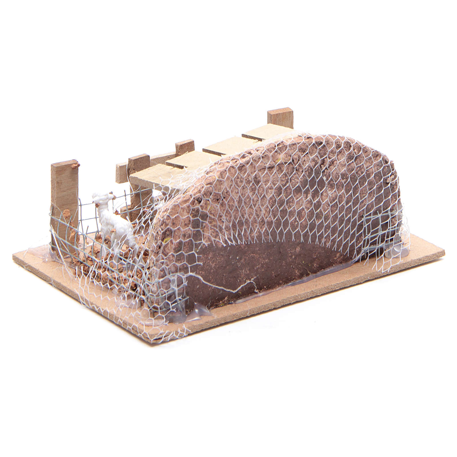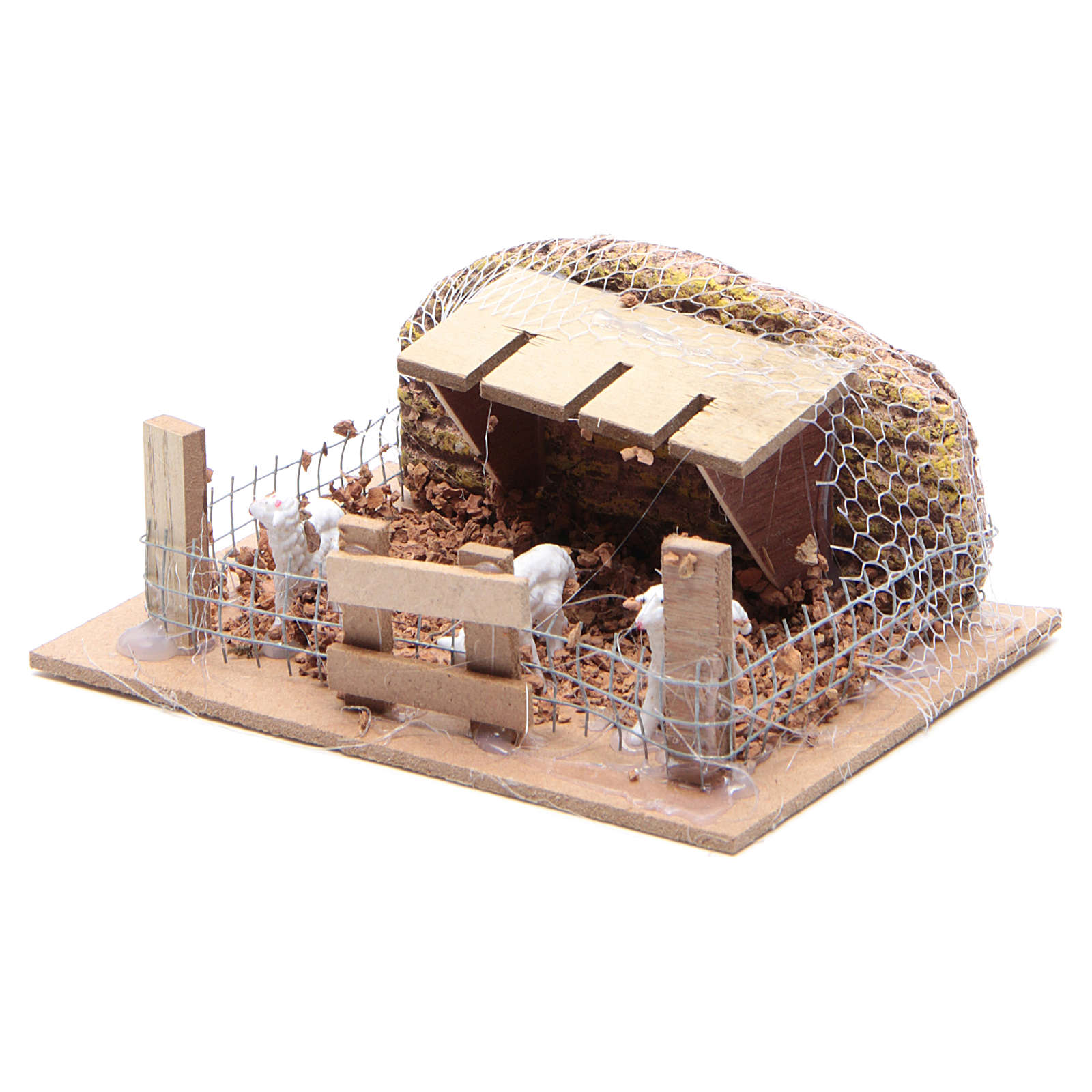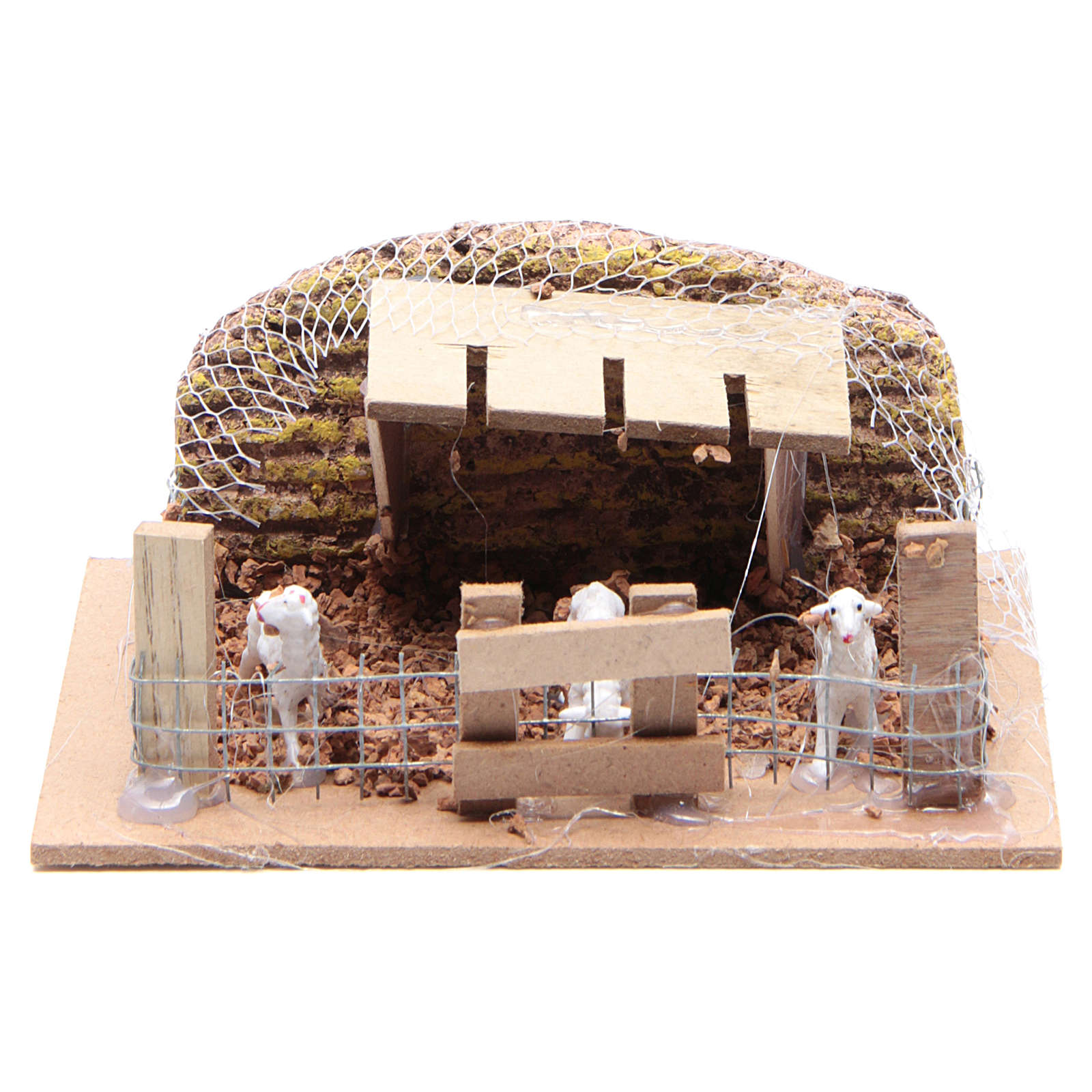 Curral com ovelhas 6x14,5x11 cm para presépio. Cenário para presépio realizado de forma artesanal na Itália.