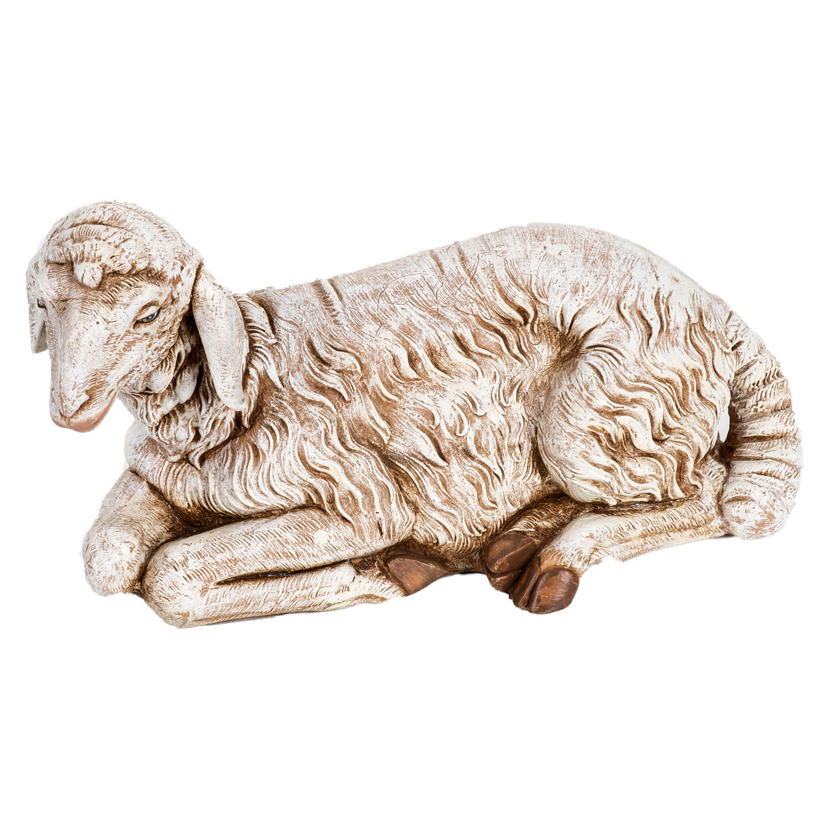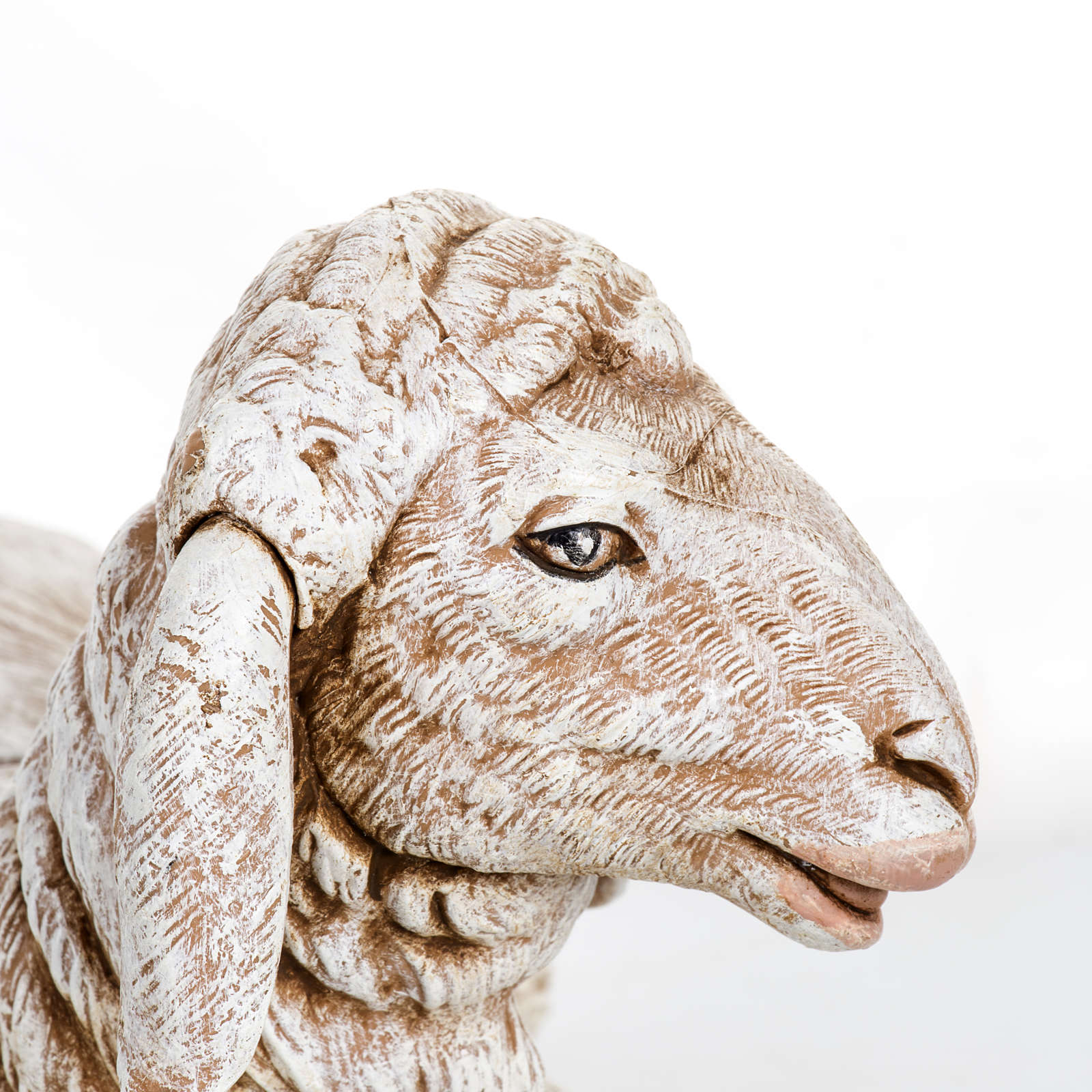 Ovelha deitada 27x13x17 cm resina para Presépio Fontanini com figuras de altura média 65 cm. Figura de ovelha deitada em resina, adequada para presépios da marca Fontanini com peças de 65 cm de altura média.