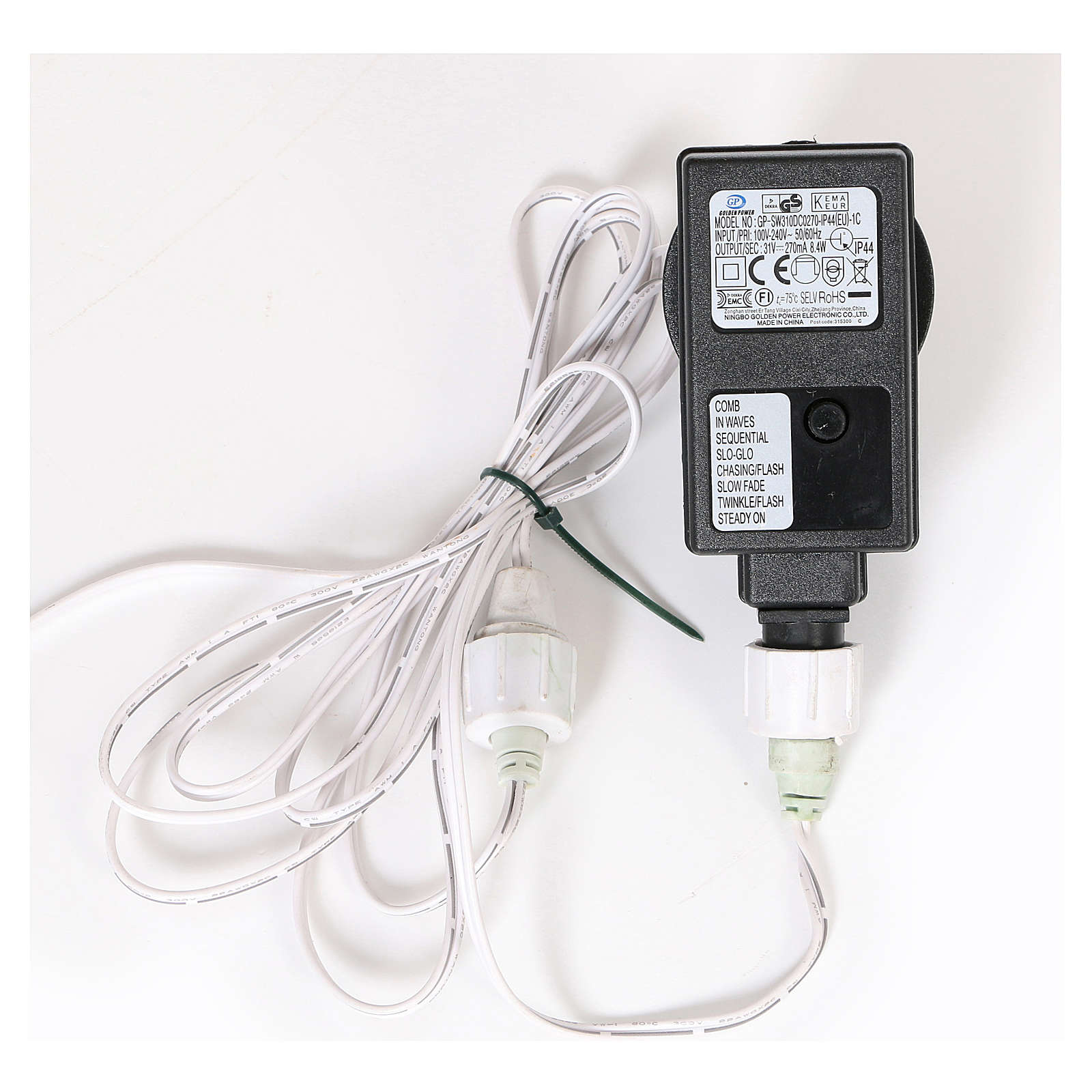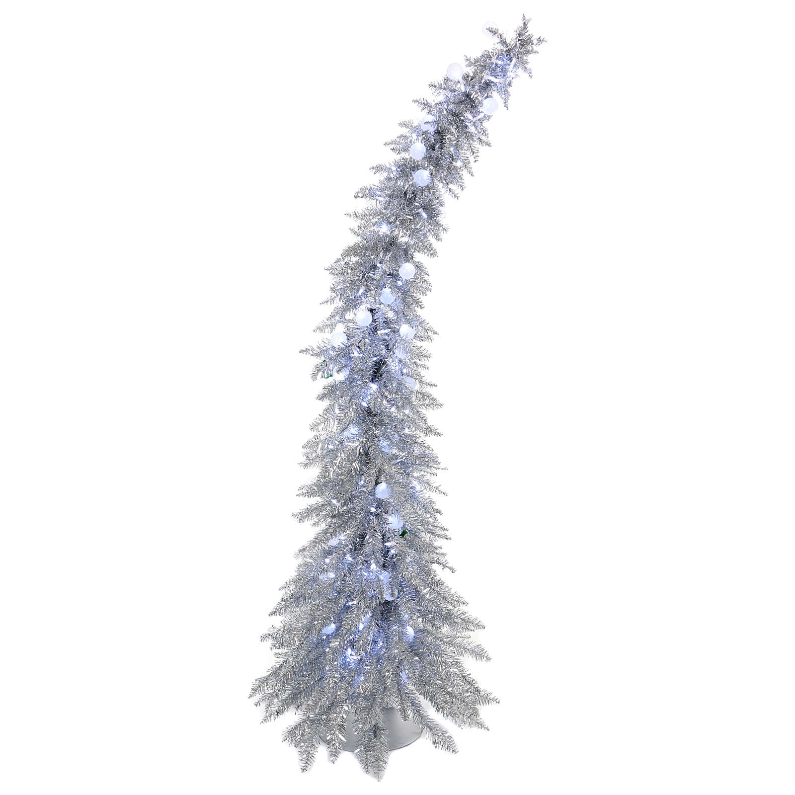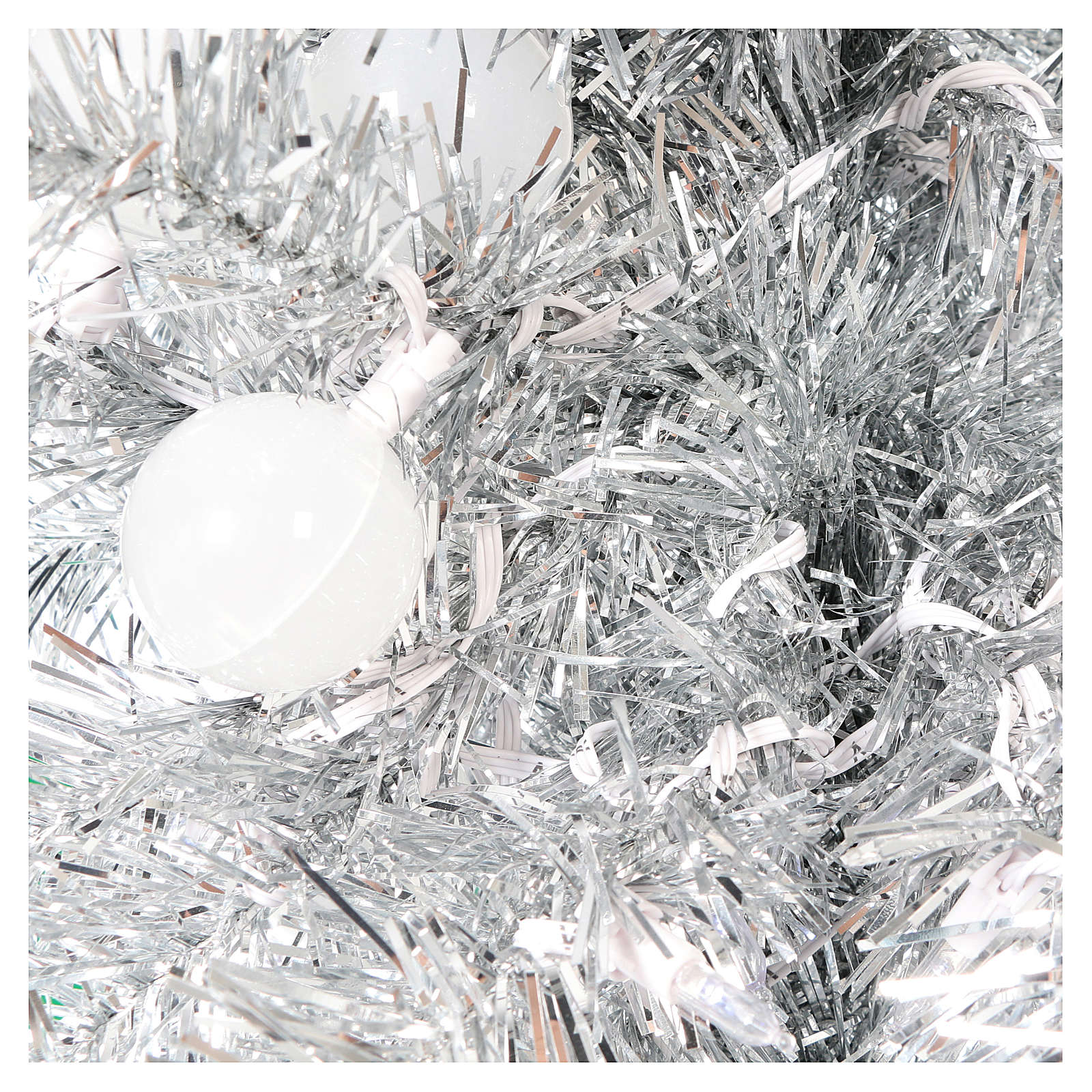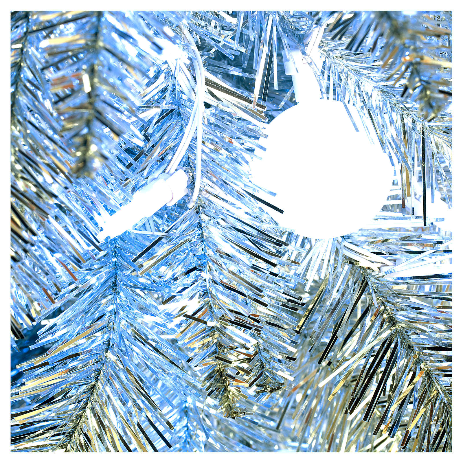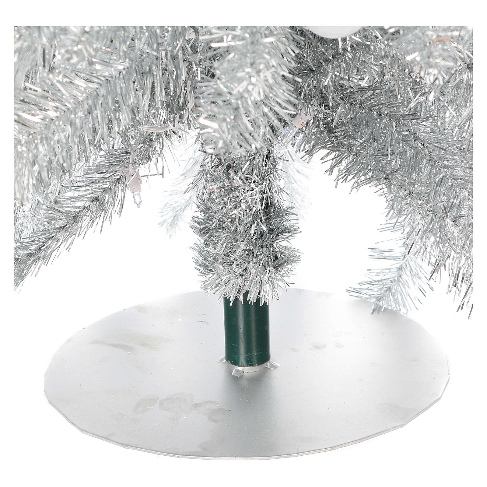 CARACTERÍSTICAS PRINCIPAIS:Número de pontas: 392;Altura: 180 cm;Diâmetro máximo: 40 cm;Montagem galhos: rápida, tipo guarda-chuva;Tipo de lâmpadas: ECO de alta eficiência, baixo consumo e substituíveis;Cor: prata;Material: PVC;Utilização: Interior/Exterior;Resistência ao fogo: retardador de chama.