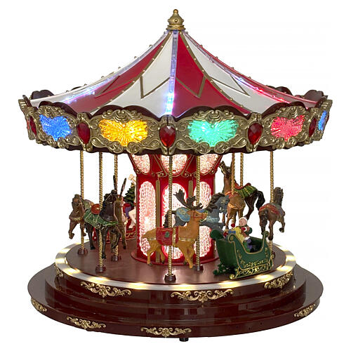 Carrossel natalino 45x40 cm luzes LED e movimento.