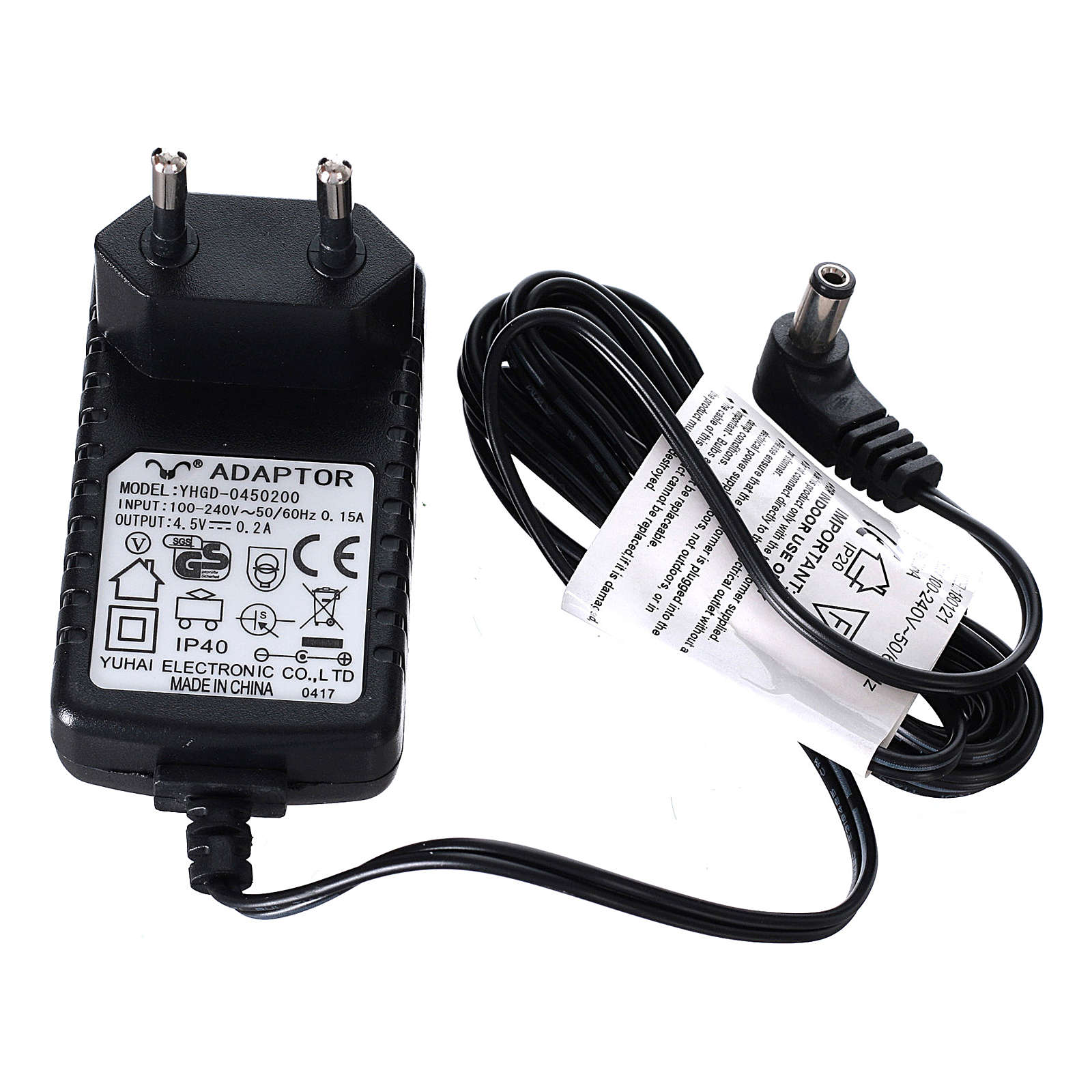 Artigo alimentado por transformador de ficha europeia 220V (ficha A10) ou por pilhas AA (incluídas).