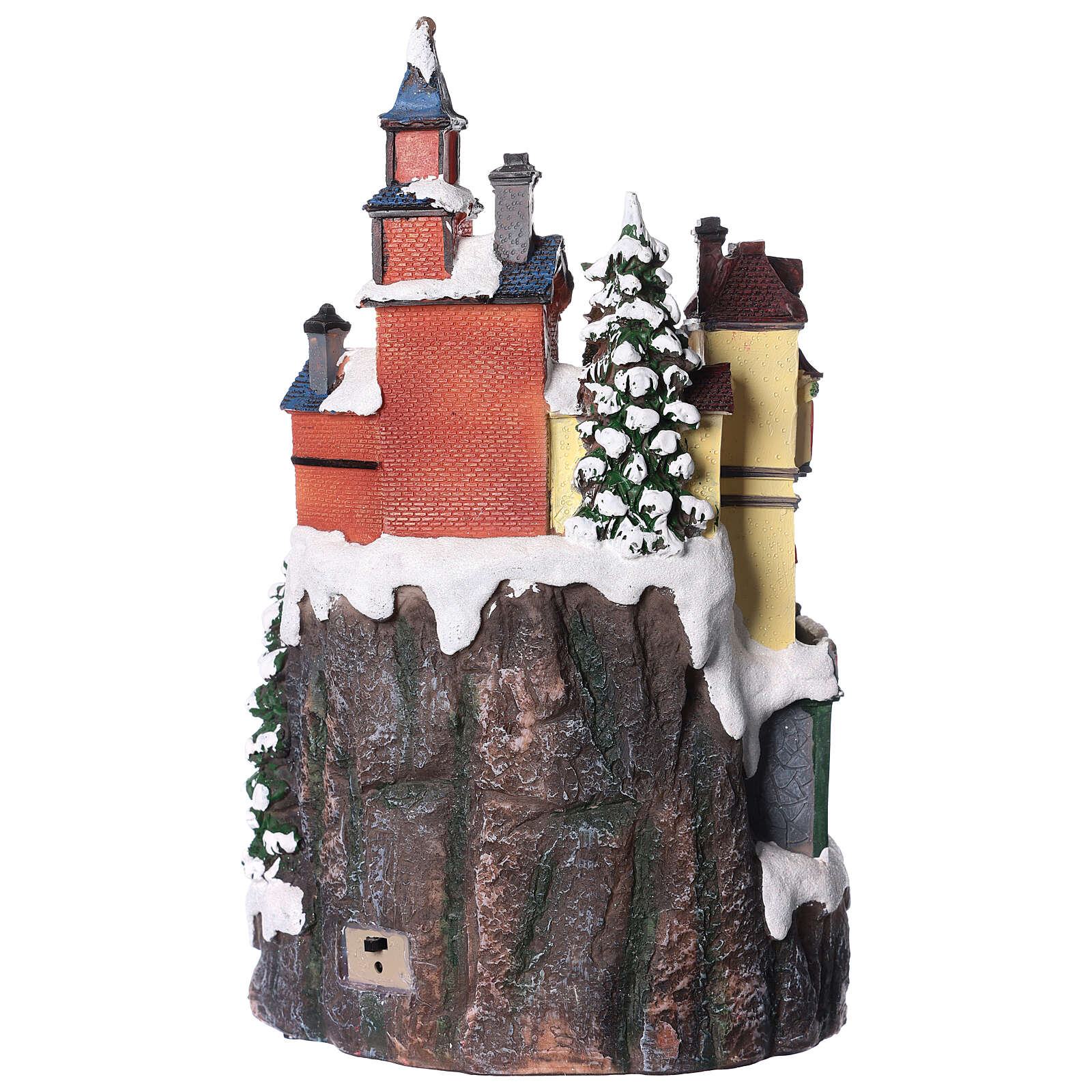 Cenário natalino com lojas movimento luz música 35x20x20 cm