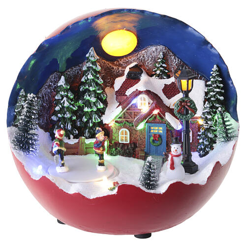 Esfera paisagem natalina com patinadores e luzes LED 20x20 cm