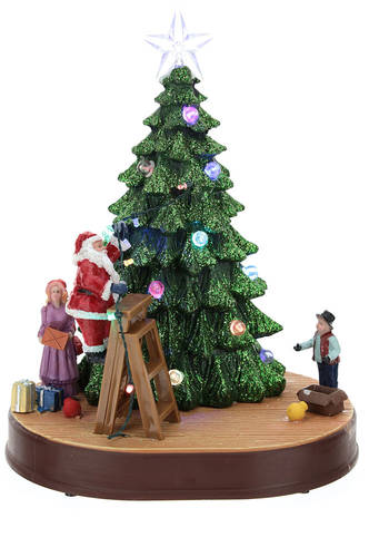 Pai Natal com árvore para cenário natalino com música e iluminação 30x25x20 cm