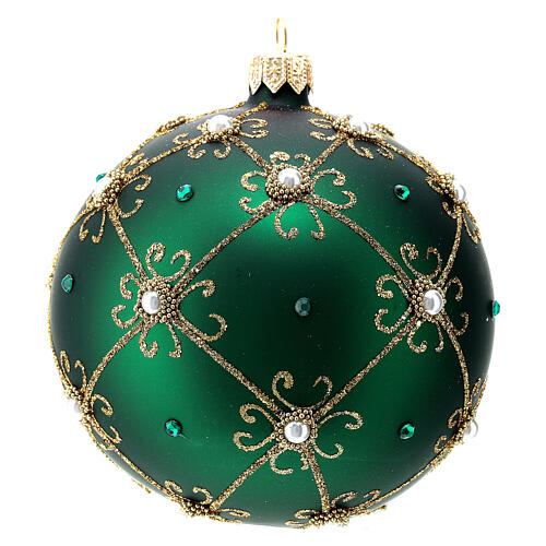 Adorno Natal bola verde e outo 100 mm. Bola de Natal em vidro soprado verde com decoração dourada de 100 mm de diâmetro.