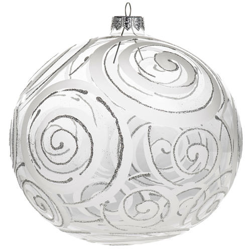 Bola árvore Natal vidro transparente decoro 15 cm. Bola de Natal de 15 cm de diâmetro em vidro soprado transparente com decoro abstracto de linhas curvas em espiral.