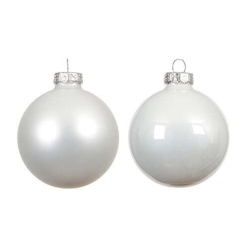 Caixa 6 bolas brancas vidro brilhante e opaco 8 cm.