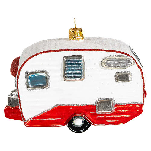 Enfeite para árvore de Natal de vidro soprado em forma de caravana clássica, parte da coleção Transporte.