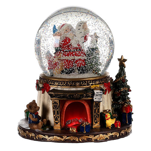 Globo de neve Pai Natal com lareira e presentes 20x15x15 cm