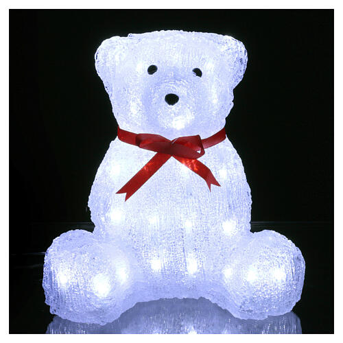 Enfeite luminoso urso 40 Leds interior exterior h 27 cm. Enfeite de Natal em forma de urso composto por 40 Leds branco frio, de uma altura de 27 cm. Adorno luminoso de luz fixa para decoração em interior e exterior.CARACTERÍSTICAS TÉCNICAS: