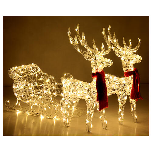 Par de renas e trenó fio de cristal 240 LEDs interior e exterior h 75 cm.