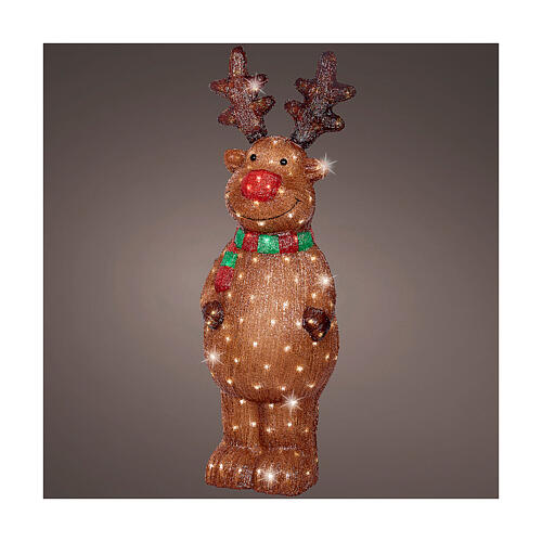 Rena com cachecol natalino iluminada por 180 LEDs de luz branca fria.