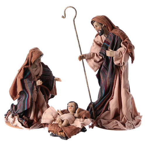 Natividade 3 peças 26 cm resina e tecido. Figuras da Sagrada Família em resina pintada à mão e tecido com uma altura de 26 cm.