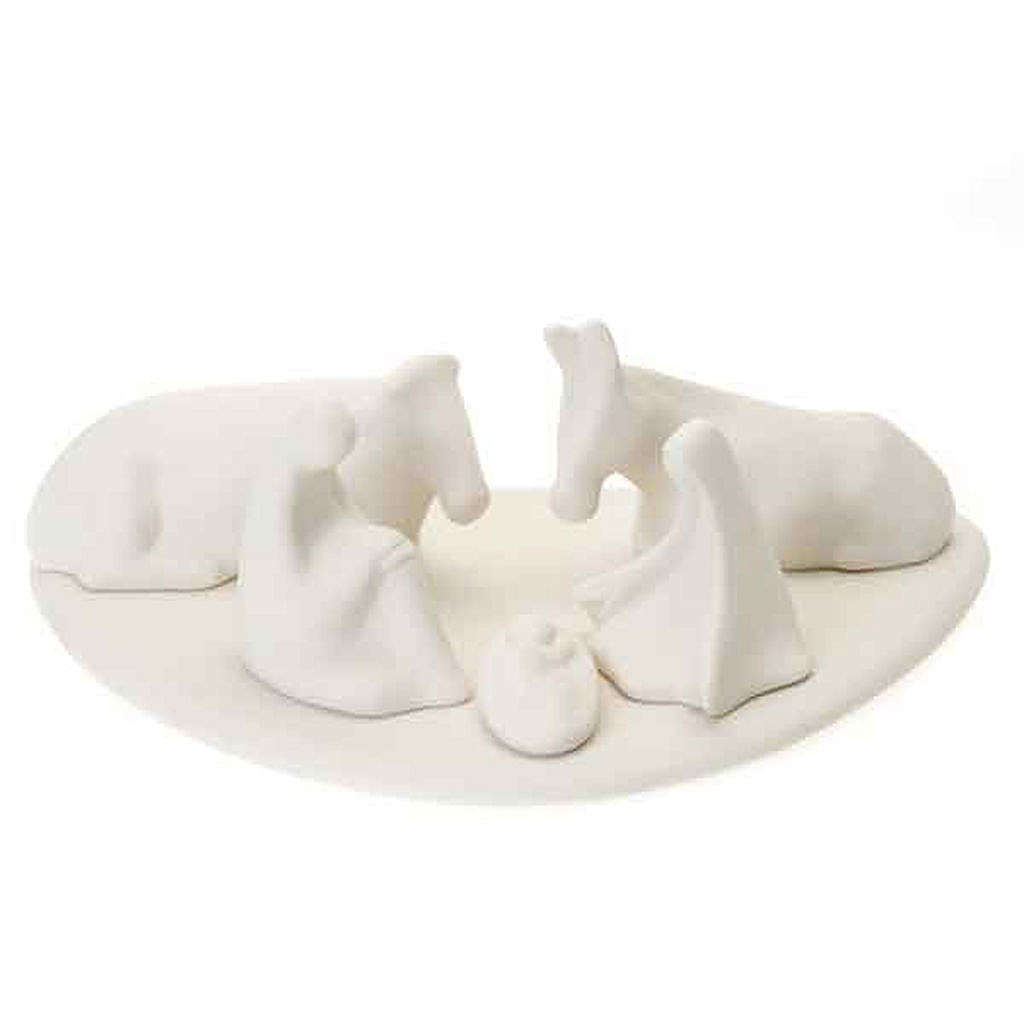 Presépio com base boi e burrinho. Presépio com Natividade, boi e burrinho, sobre base em porcelana com design exclusivo. Obra assinada por Francesco Pinton, acompanhada por certificado de garantia.