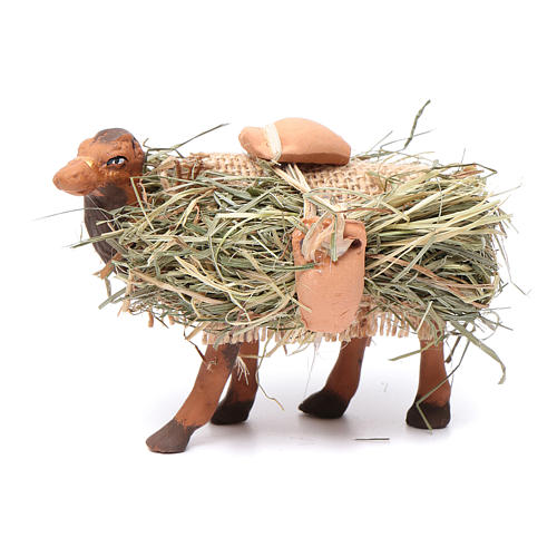Camelo em pé com madeira 8 cm presépio terracota Nápoles. Figura de camelo com carga de madeira para presépio em terracota manufacturada em Nápoles de 8 cm de altura.