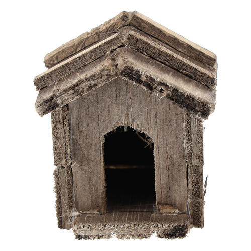 Canil simples em madeira para presépio com figuras de 10 cm de altura média. Acessório em miniatura em madeira de 2,5 cm de altura real, adequado por presépio com peças de 10 cm.