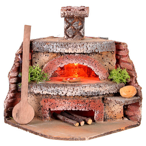 Forno para pizza iluminado efeito chama 10x12x10 cm presépio Nápoles 6-8 cm.