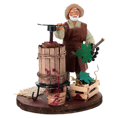 Homem com prensa e uva para presépio napolitano 10 cm.