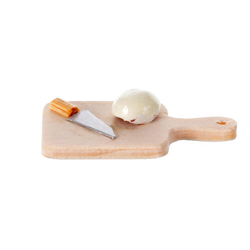Tábua de cortar com queijo para presépio napolitano, medindo 4 cm.