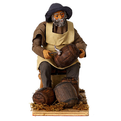 Tanoeiro movimento 24 cm. Tanoeiro que trabalha na oficina: cena de presépio com movimento e peça em terracota de 24 cm, realizada à mão com grande atenção nos detalhes.