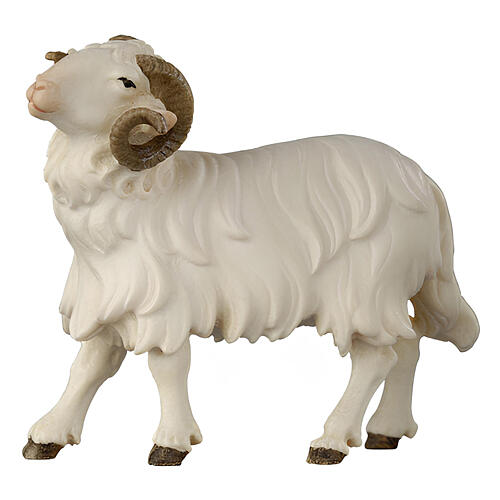 Carneiro cabeça erguida para a esquerda 9,5 cm presépio Mahlknecht madeira pintada Val Gardena