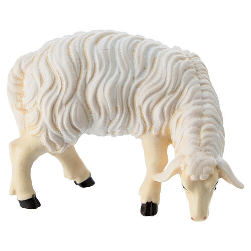 Ovelha comendo cabeça para a direita para presépio 12 cm Heimatland Val Gardena madeira pintada