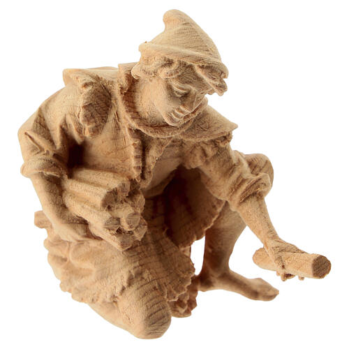 Pastor ajoelhado com lenha 12 cm presépio de montanha pinheiro cembro natural