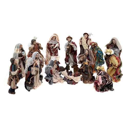 Conjunto 16 figuras presépio de Natal resina e tecido