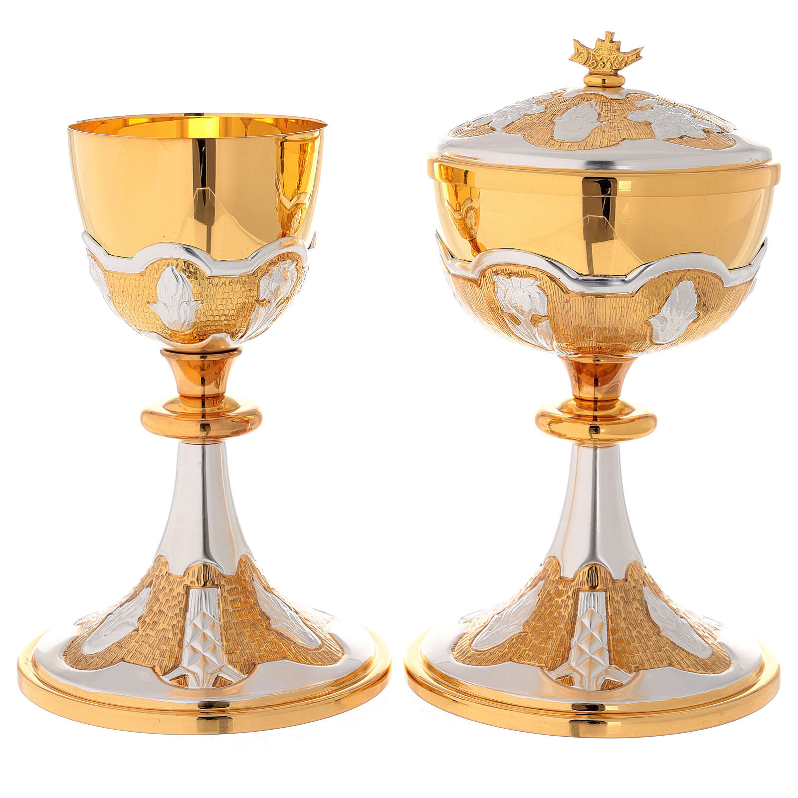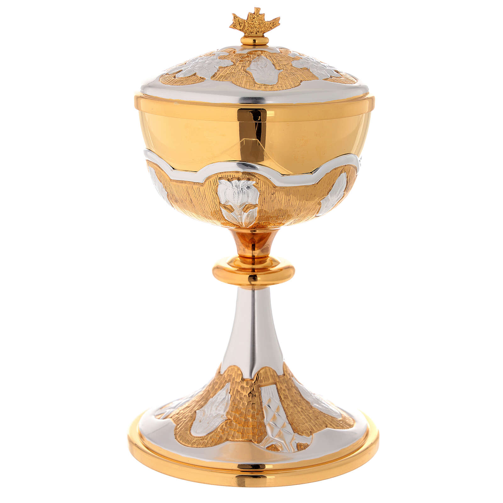 Este cálice eucarístico e este cibório são manufacturados numa pequena empresa italiana com mais de 50 anos de história. A alta qualidade dos materiais, os desenhos originais e o trabalho artesanal fazem deste artigo uma peça única.