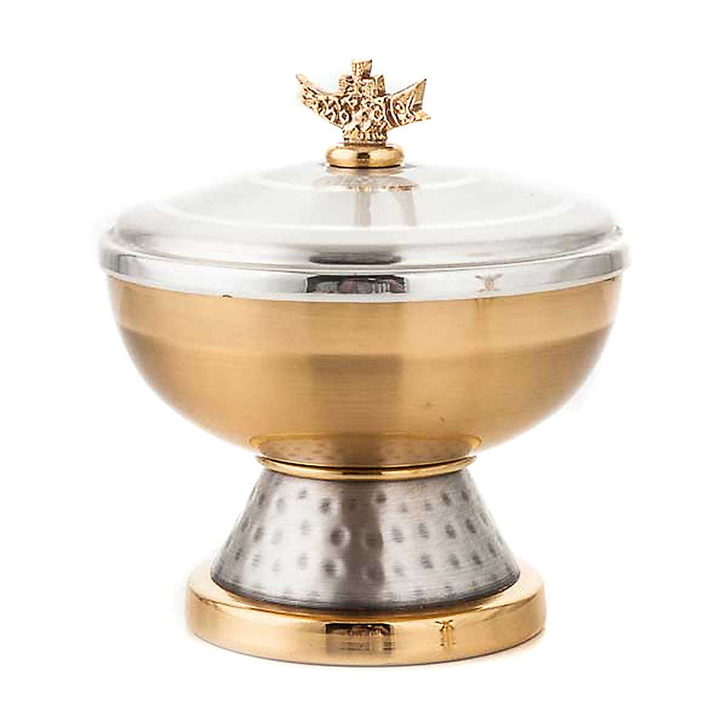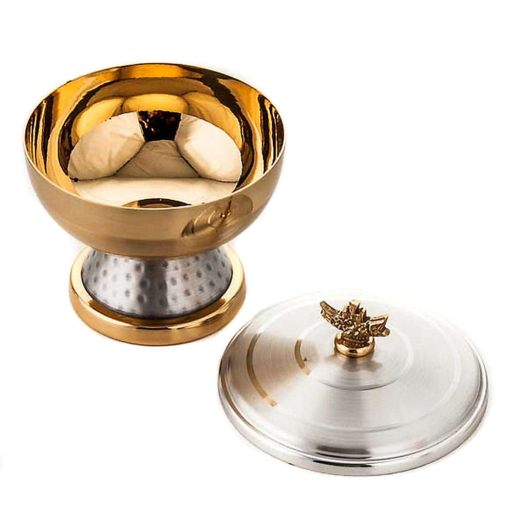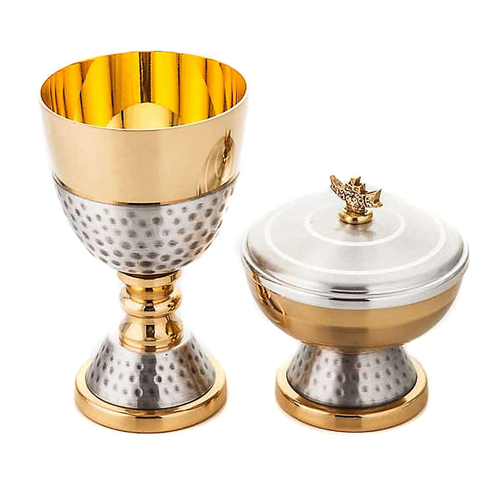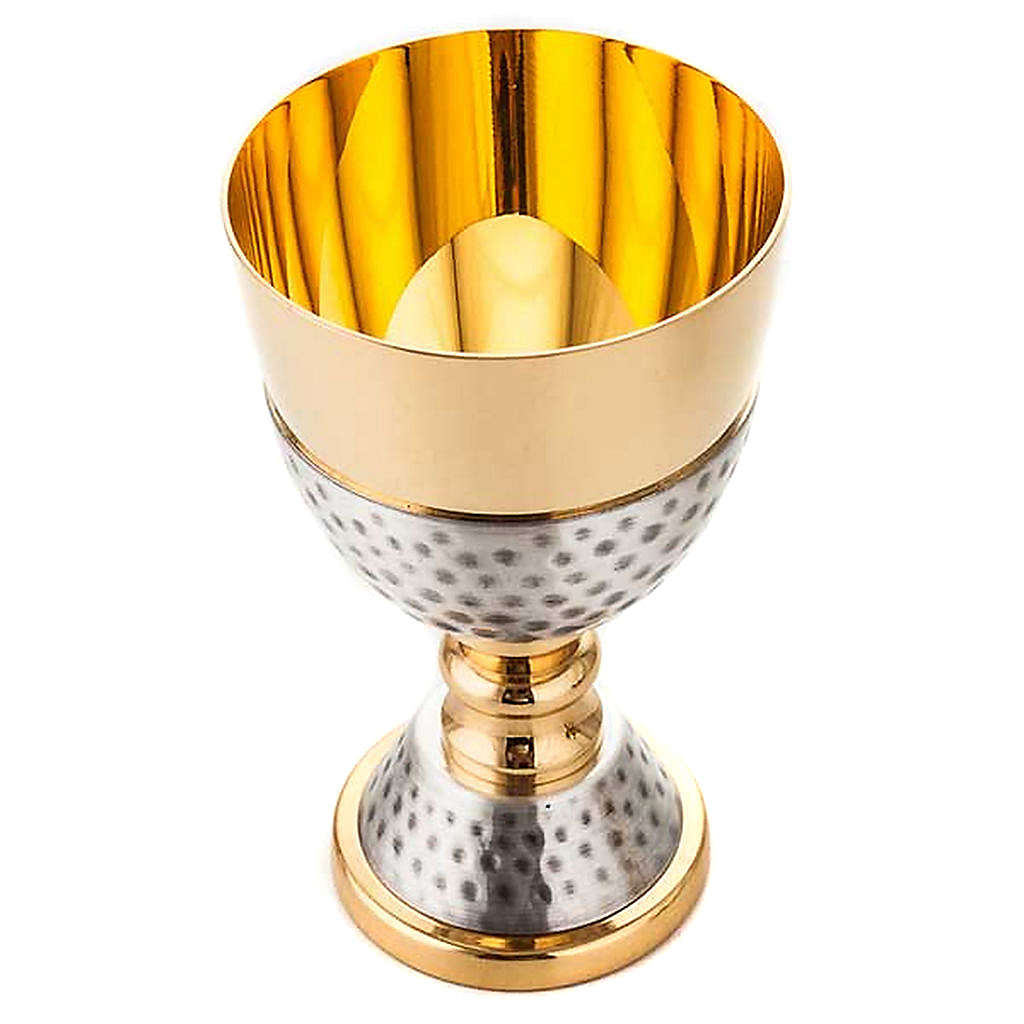 Cálice e cibório latão martelado. Cálice e cibório em latão dourado e prateado martelado, realizados de forma artesanal numa pequena empresa italiana com mais de 50 de experiência.
