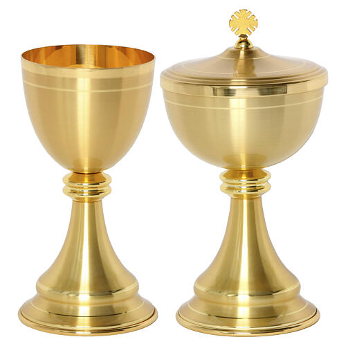 Cálice e píxide em metal dourado liso