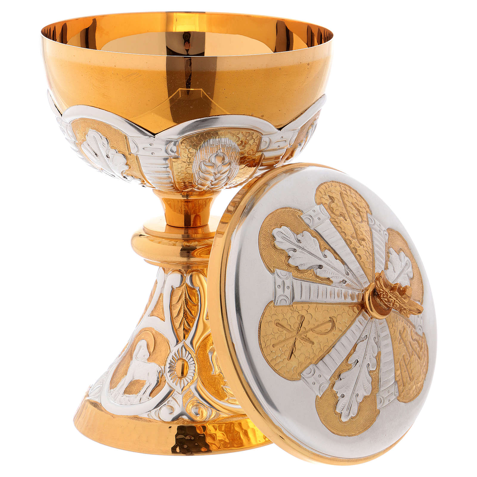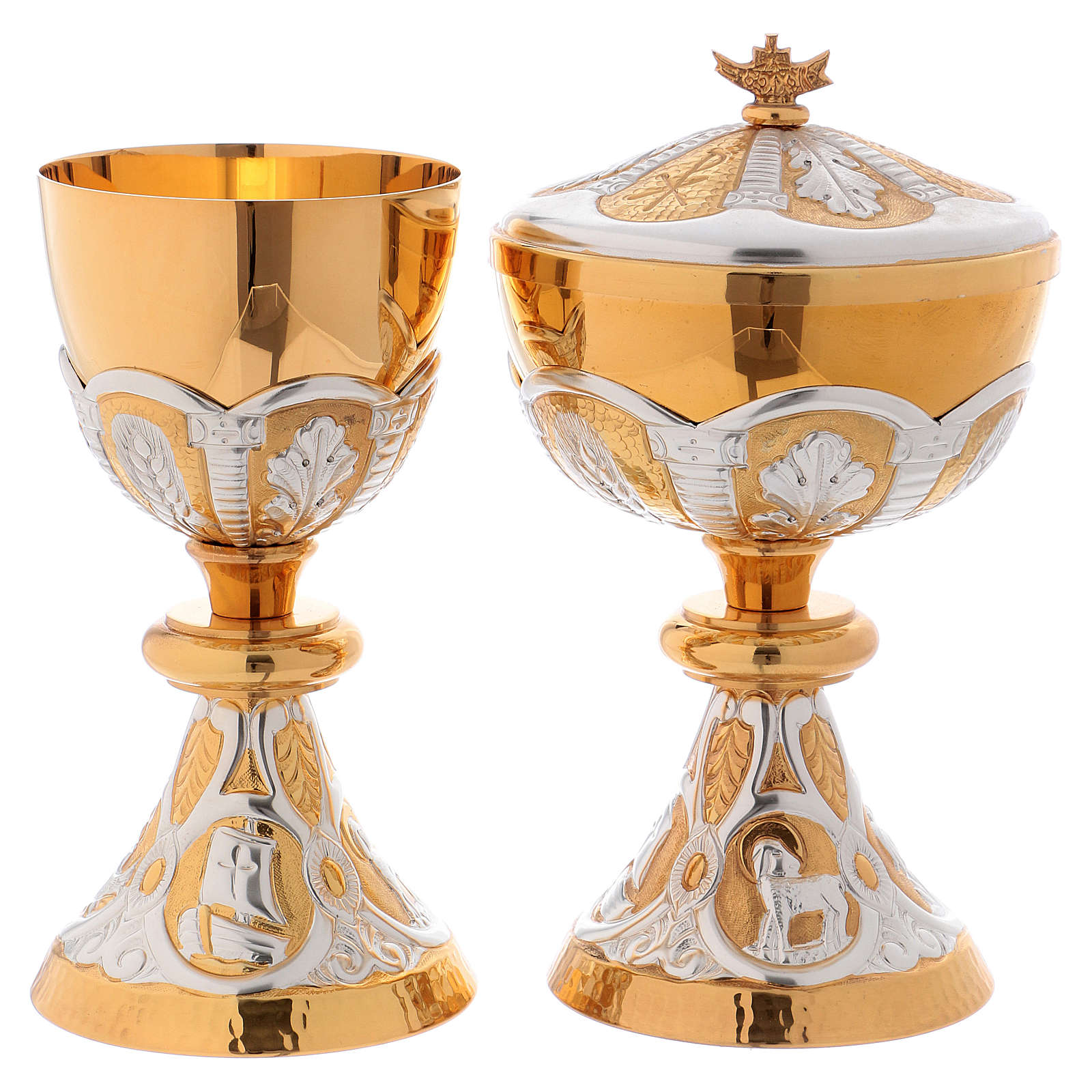 Cálice e píxide latão cinzelado Cordeiro Arca da Aliança