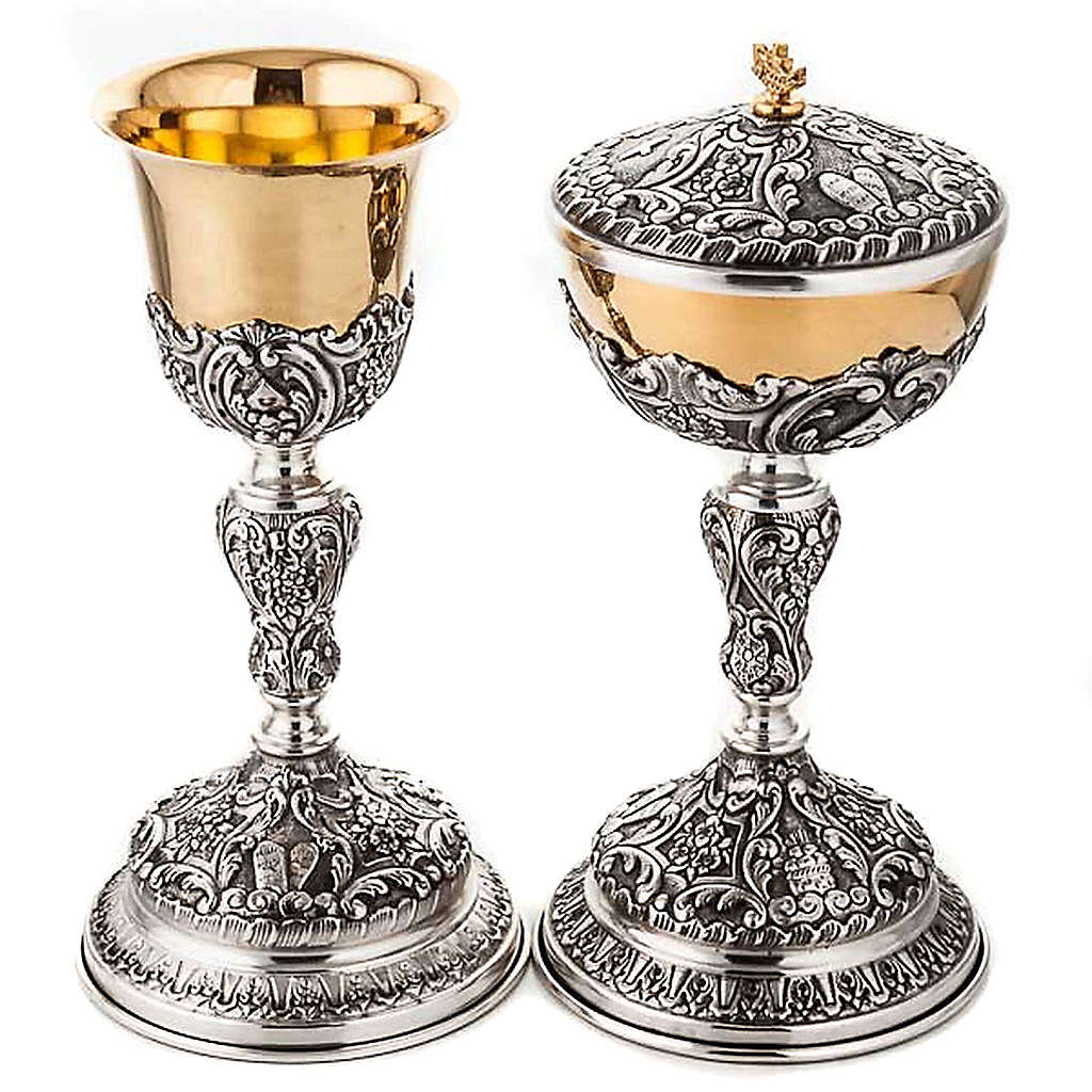 Cálice e píxide pão cordeiro tábuas lei prata