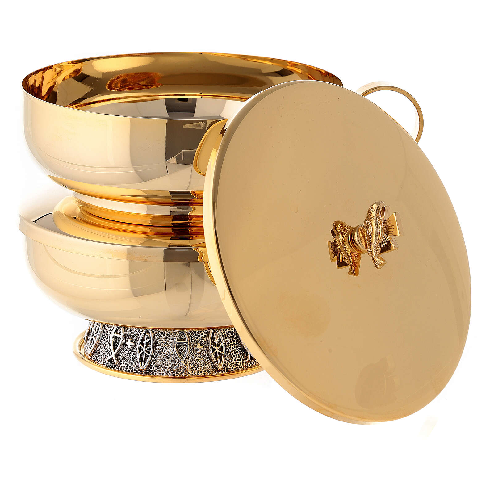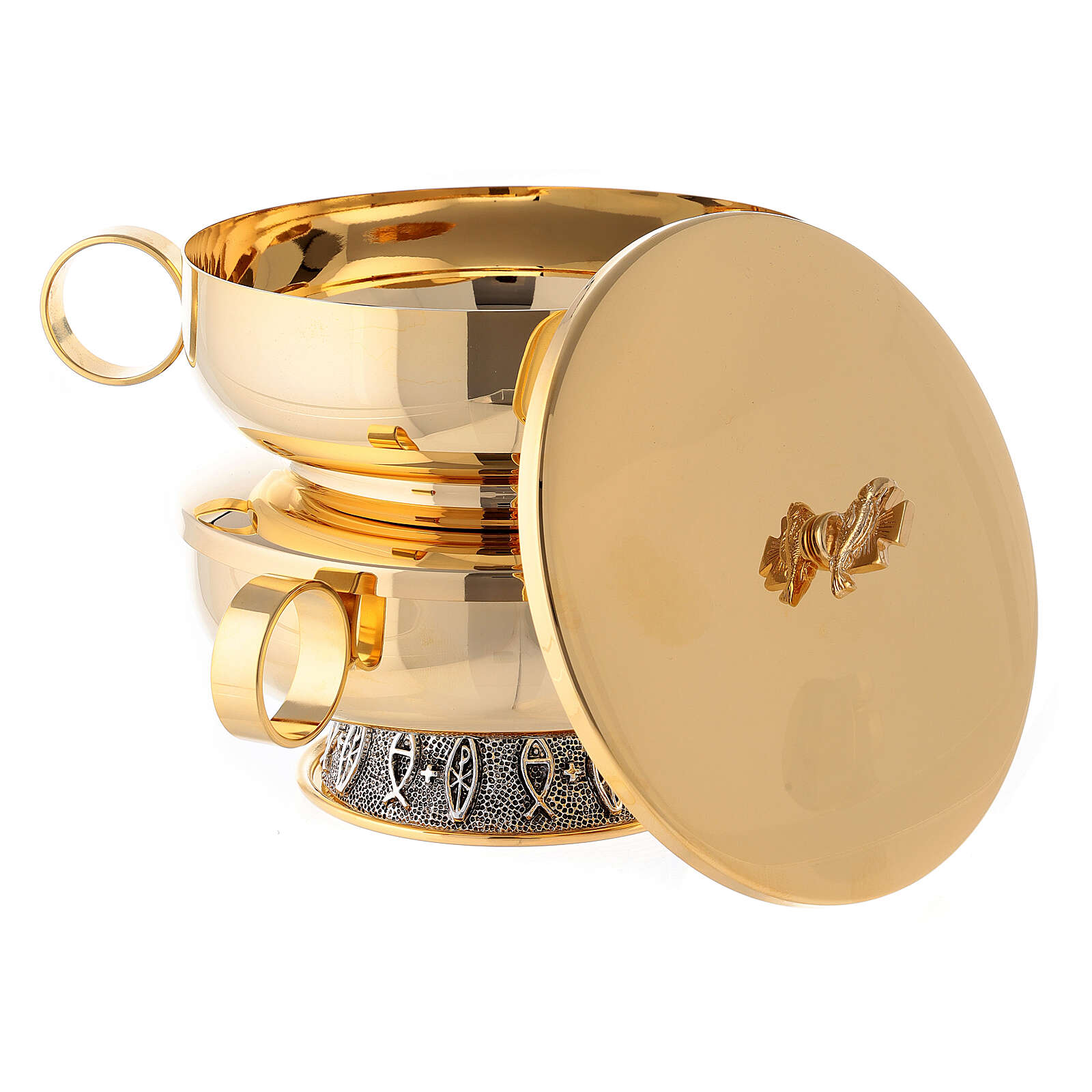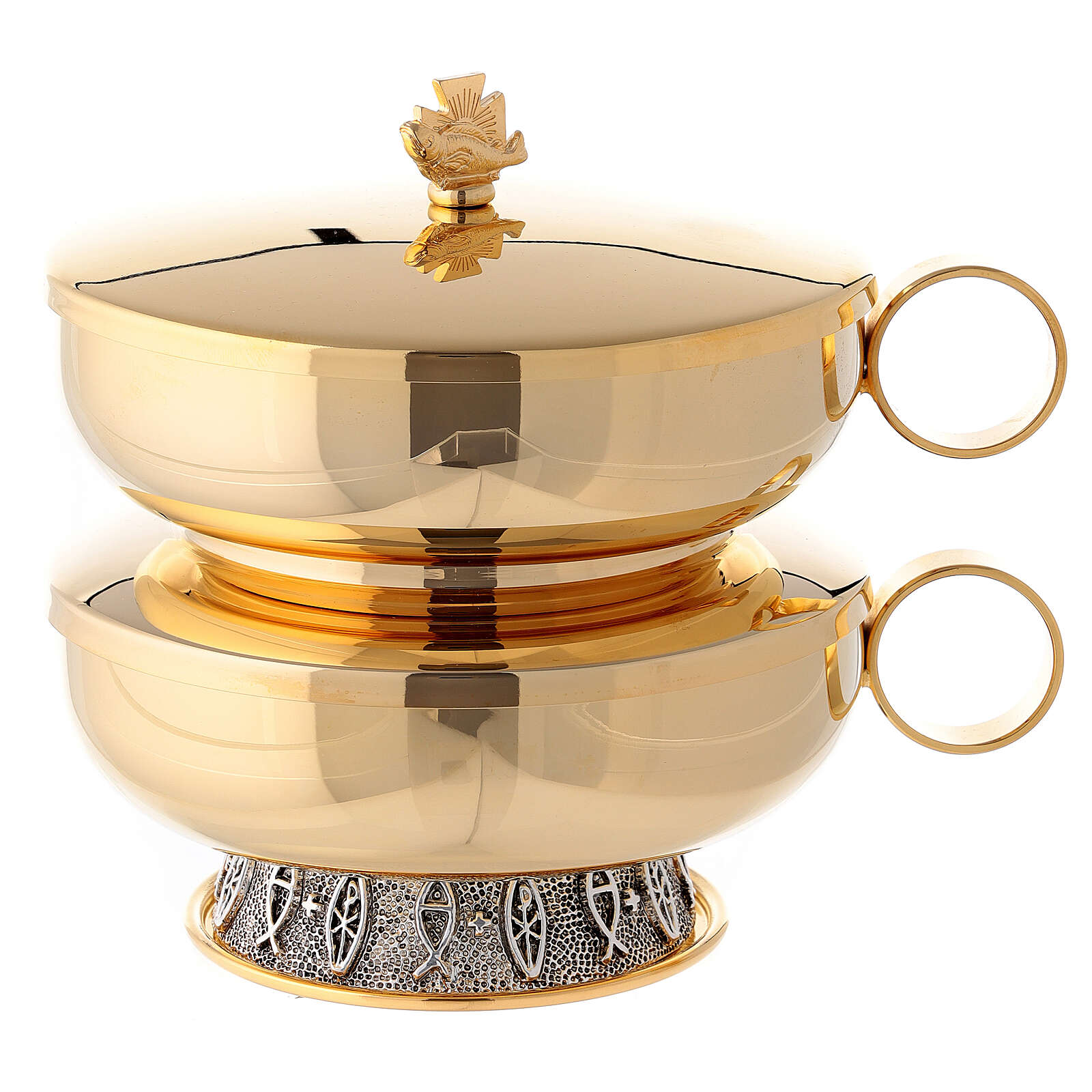 Píxide dupla latão brilhante diâmetro 14 cm