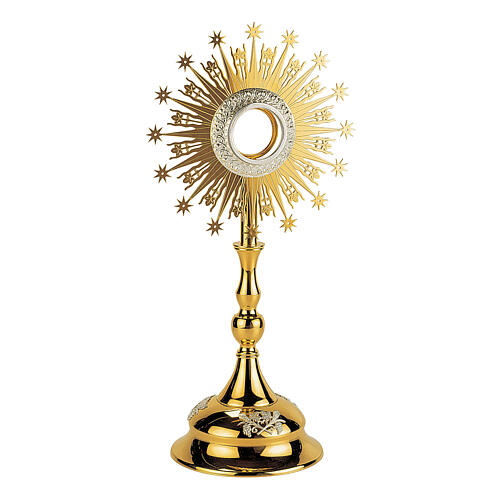 Ostensório em latão dourado com raios e estrelas base uva e trigo 65 cm Molina.