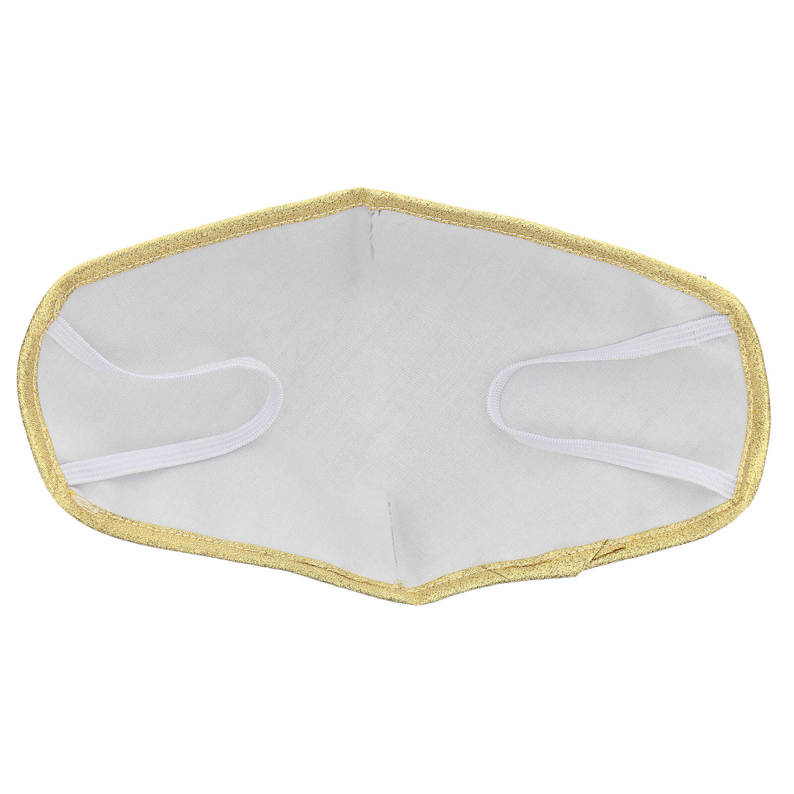 Máscara de tecido lavável verde/ouro.Máscara de proteção de tecido reutilizável e lavável, cor verde e ouro. Esta máscara é ideal para utilizar nas celebrações litúrgicas.Máscara constituída por duas camadas de tecido: 100% fibra de bambu no interior e 100% poliéster no exterior. Características da máscara:- fresca e respirável;- suave ao toque;- antialérgica;- confortável e leve.Este modelo de máscara cobre bem a boca e a nariz e permite falar livremente sem medo que se mova. Além disso, a máscara pode ser lavada à mão em água fresca com desinfetante.Atenção: este artigo não é um dispositivo de proteção individual completa, mas sim uma máscara filtrante conforme o artigo 16, 2 D.L.n. 18/2020.