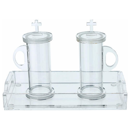 Bandeja e galhetas com cruz em acrílico 100 ml.