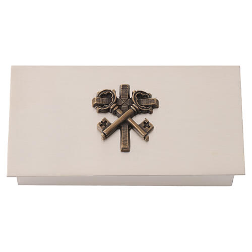 Caixa para chaves sacrário latão chaves cruz Molina. Caixa para chaves de sacrário em latão, realizada pela empresa espanhola Molina e decorada com chaves e cruz.