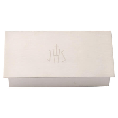 Caixa para chaves sacrário latão prateado IHS Molina. Caixa para chaves de sacrário em latão prateado com símbolo IHS, realizada pela empresa espanhola Molina.