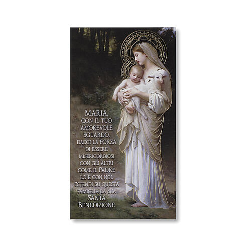Esta prancheta de Bênção da Família é finamente decorada com impressões em ouro quente e representa a Nossa Senhora da Divina Inocência.