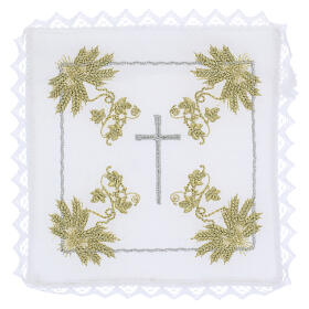 Pala rígida para cálice Chi-Rho uva e trigo Jacquard adamascado branco