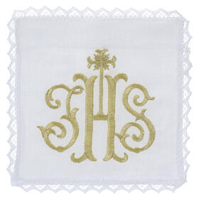 Conjunto completo de linho para altar JHS cálice e hóstia bordado em fio dourado